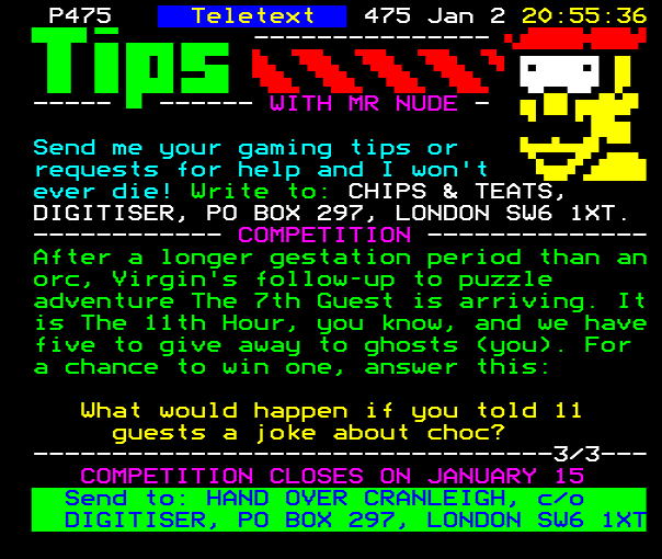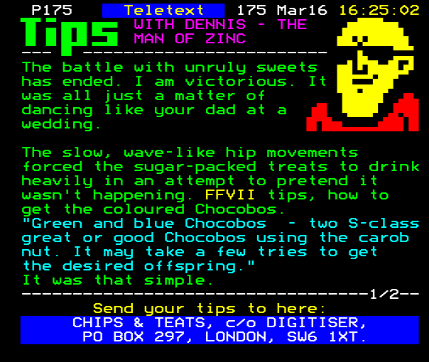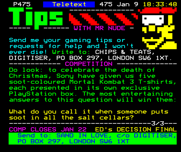 ...-1/2-- Send your tips to here: CHIPS & TEATS, C/O DIGITISER, PO BOX 297, LONDON SW6 1AT....