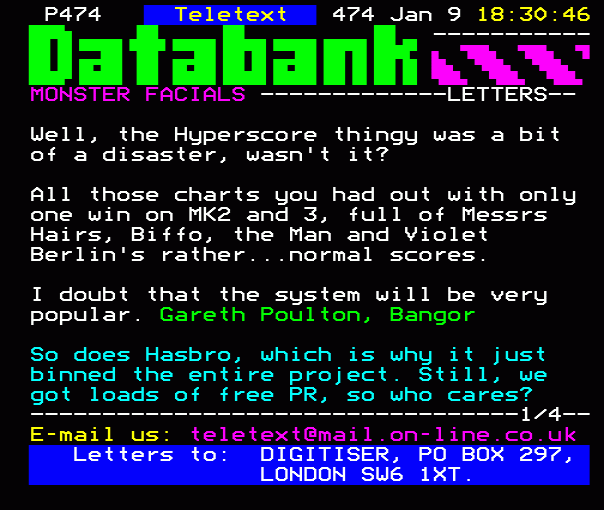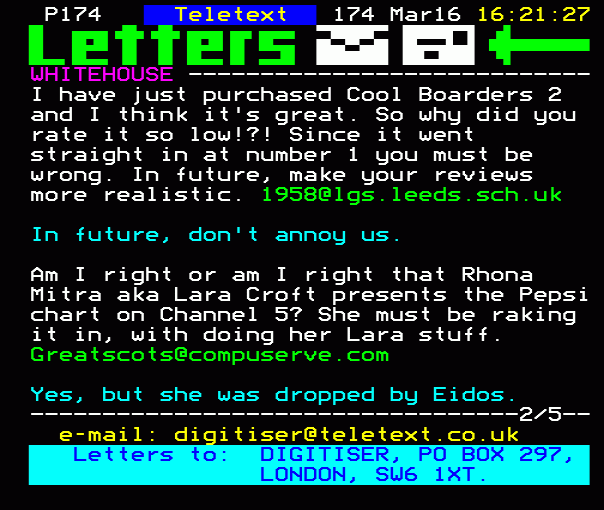 ...te or most hated game of all time: 2/4 E-mail us: digitiser@teletext.co.uk Letters to: DIGITISER, PO...