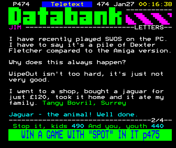 ...P474 Teletext 474 Dec16 14:15:41 ----------- YOUR DIGITISER GOLDEN MOMENTS --------- I think Mr Biff...