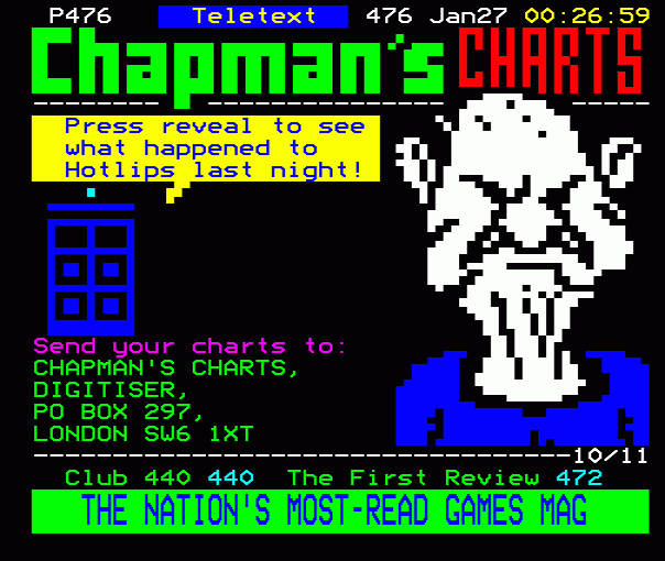 ...ur favourite! Send your charts: CHAPMAN'S CHARTS, DIGITISER, PO BOX 297, LONDON SW6 1XT ------------...