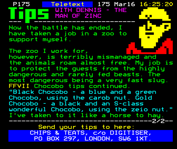 ...nd your charming tips to here: CHIPS & TEATS, c/o DIGITISER, PO BOX 297 LONDON SW6 1XT....