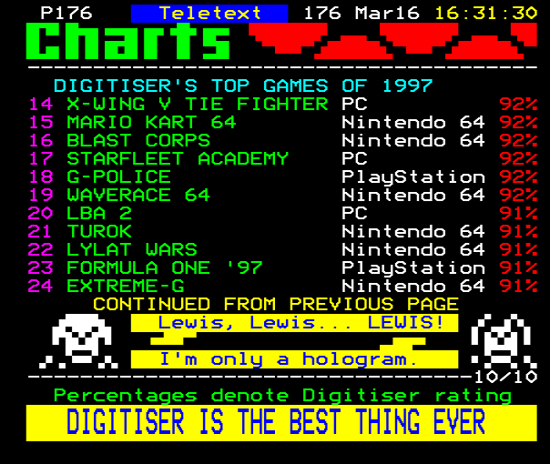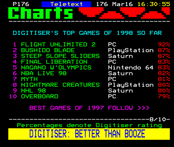 ...estry of Turok 2 THE CHARTS---------------676 THE DIGITISER WEB SITE: www.teletext.co.uk/digitise.ht...